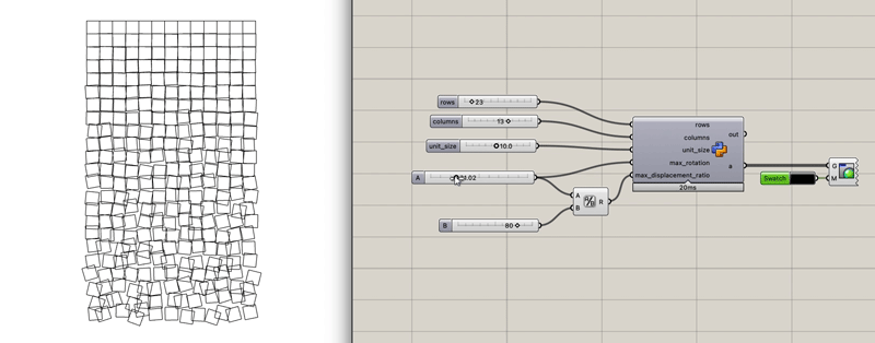 I added sliders that allow to adjust the number of rows, columns, rotation, and displacement ratios respectively: